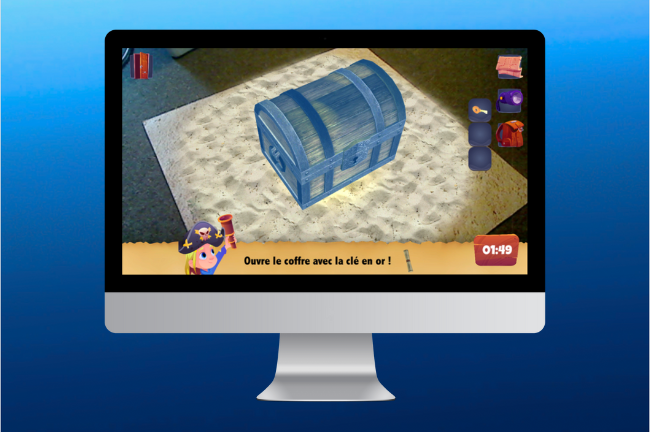 A unity game with an AR engine, using pre-defined markers to open 3D chests that fly around the user
