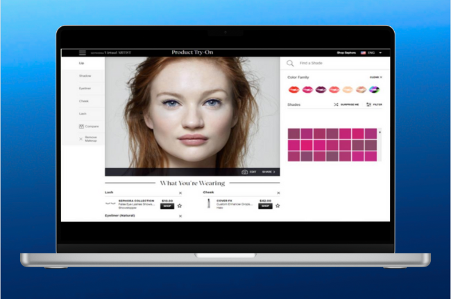 The system allows the consumers to upload photos or use model photos, the system scans photos for face, eyes detection, lips, and cheeks for product placement. It allows the consumers to try on makeup virtually to see just what this eyeliner or that lipstick looks like to give the consumers a live experience.